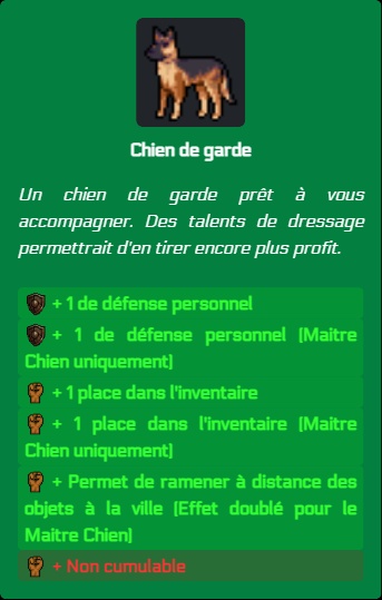 Arpentez les terres désolées avec votre fidèle animal de compagnie et livrez des objets en banque depuis l'extérieur. Votre chien vous défendra et son passé de chien détective cherchera des injections une fois par jour.