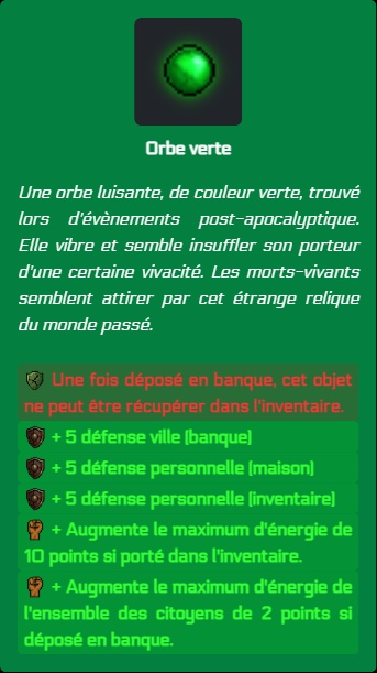 Nous avons aussi ajouter à la demande de la communauté un référentiel complet des objets et des bâtiments, accessible depuis le menu du joueur.