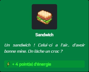 - Ajout du status "Fatigue" si l'utilisateur arrive à utiliser un certain nombre de points d'énergie en une journée. Disparait la nuit ou via l'ajout du nouvel objet : les Vitamines.
