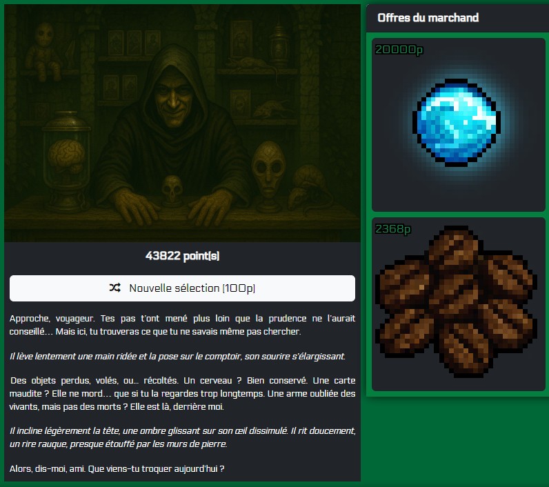 Un nouvel évènement fait son arrivée : Le marché du Néant pourra maintenant accepter ponctuellement d'échanger, lors de cet évènement, une orbe par ville. Son prix est cependant ce qu'elle vaut : exhorbitant ! Voici un exemple ci-dessous :