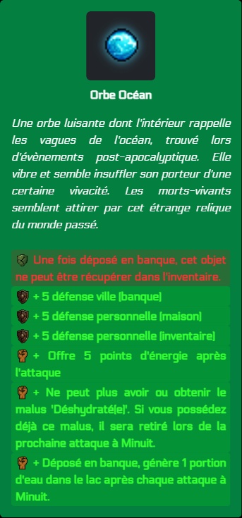 Avez-vous remarquer la présence d'un objet inconnu au bataillon ? Il s'agit de l'Orbe Océan ! Un nouvel objet qui devrait, combiné avec l'orbe bleu, vous rendre quasi-invulnérable aux oublis.